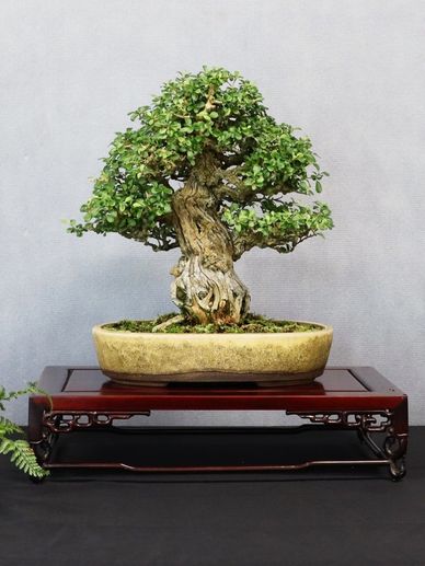 Bonsai (pronounced bone-sigh) is an art form similar to painting, music, and sculpture which provides each of us with an opportunity to demonstrate our creative expression and horticultural techniques. Bonsai, translated literally from Japanese, means “tree in a tray”. It can be considered 50% art form and 50% horticulture.